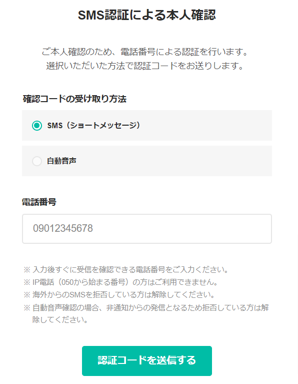 「利用規約に同意する」にチェックを入れ「本人確認」に進みます。