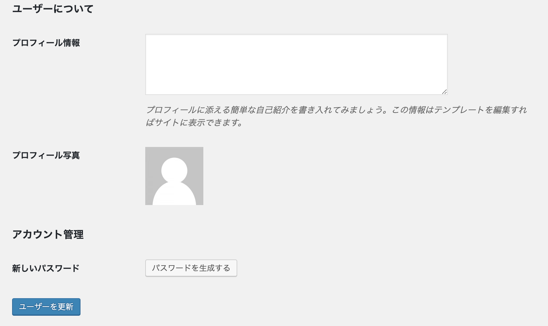 ユーザーのウェブサイトURLを入力します。入力は任意です。