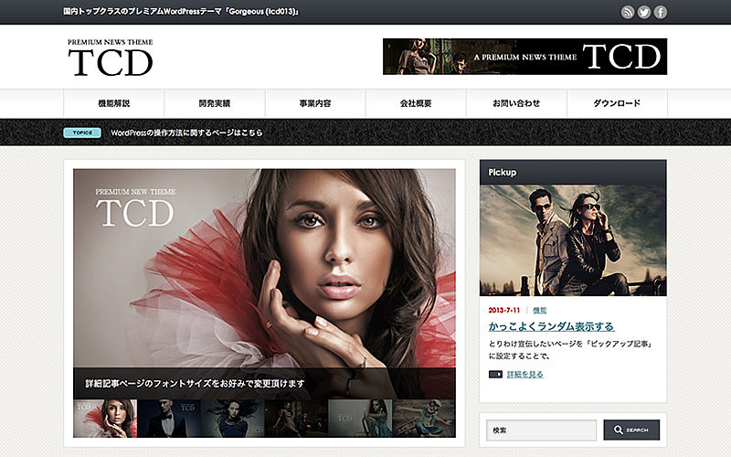 会社やお店といった「コーポレート型のサイトを作りたい」と思って検索すると、必ずHITするのがTCDのテーマですね。