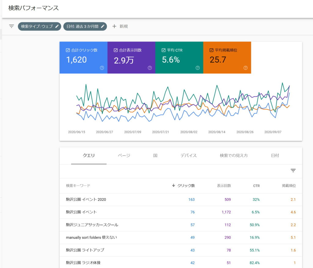 このため、まだサイトを開設して間もなくて、検索からの流入がほとんどないサイトは、下記の重要なデータが取れないためあまり参考にならないと思います。