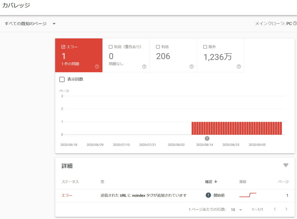 インデックスカバレッジとは、サイト内のインデックス状況を知ることができるサーチコンソールの機能です。