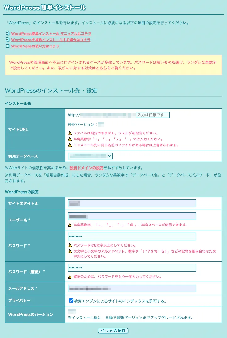 簡単インストールを使えば、画面に従って入力するだけで数分できてしまいます。