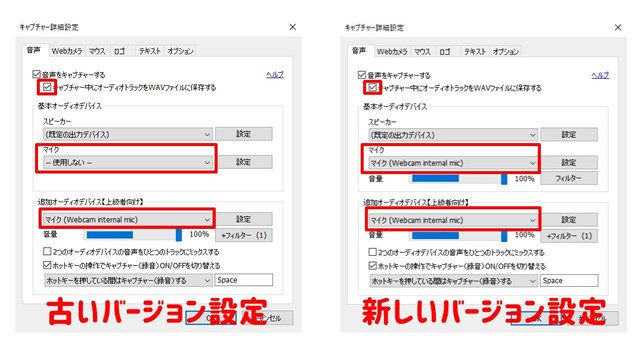 Bandicamのバージョンによって設定方法が違いましたので2つ記載します。