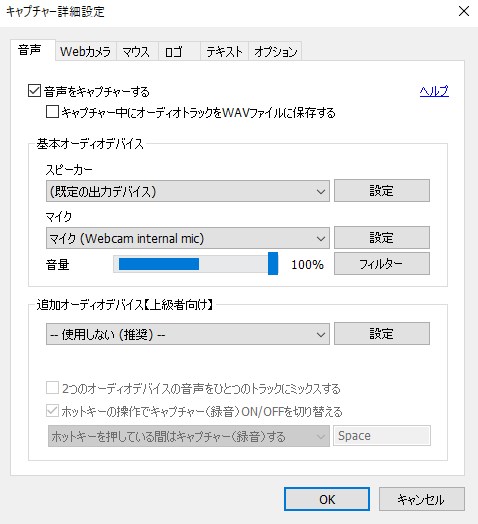 キャプチャー中にオーディオトラックをWAVファイルに保存にチェック