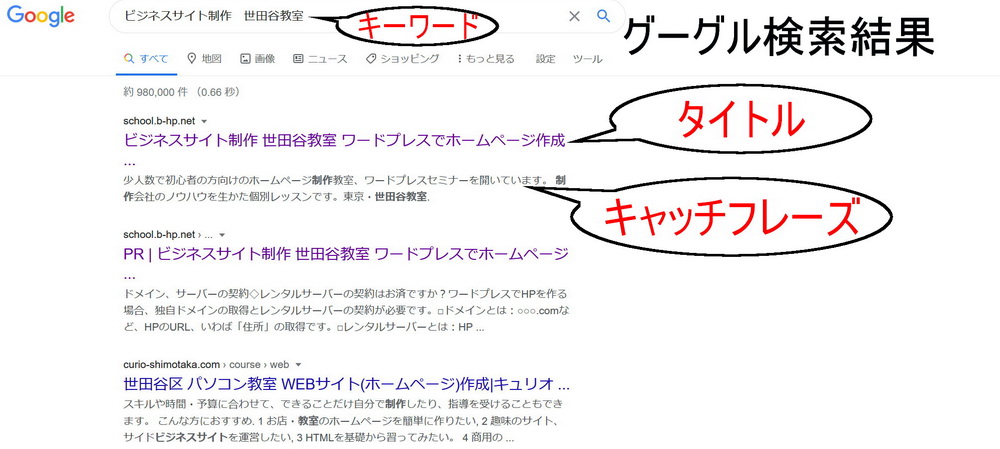 タイトル、キャッチフレーズはグーグル検索結果を意識して考えて!